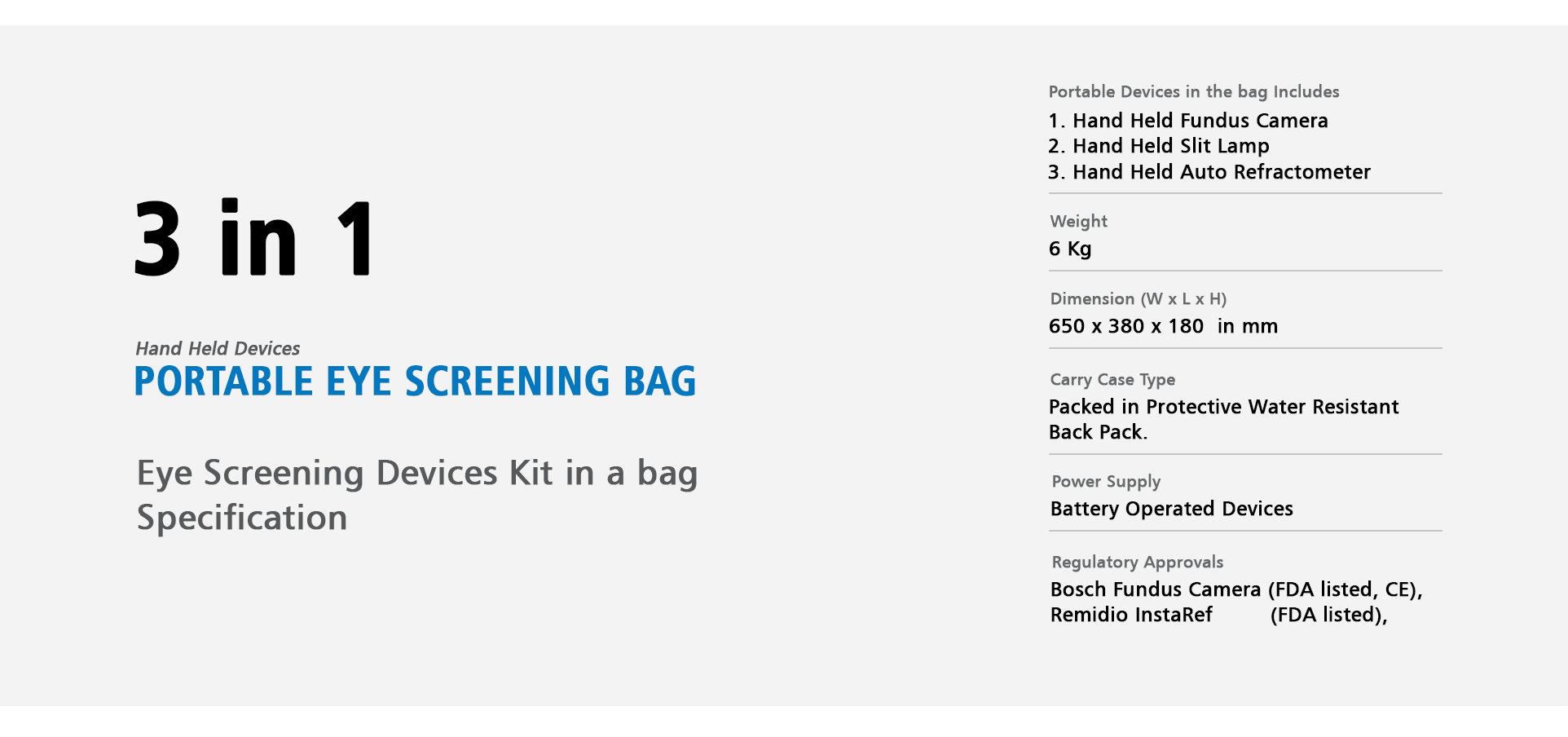 3 in 1 - KIT PRODUCT SPECIFICATION