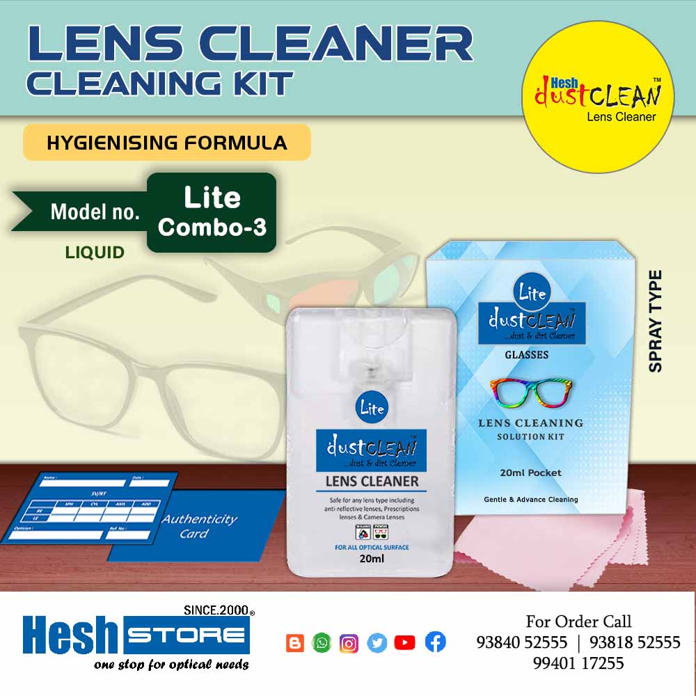 Dustclean lite spectacle cleaning formula increases the lather and foam in the fluid which helps to removes the dust & dirt easily from any Lenses.